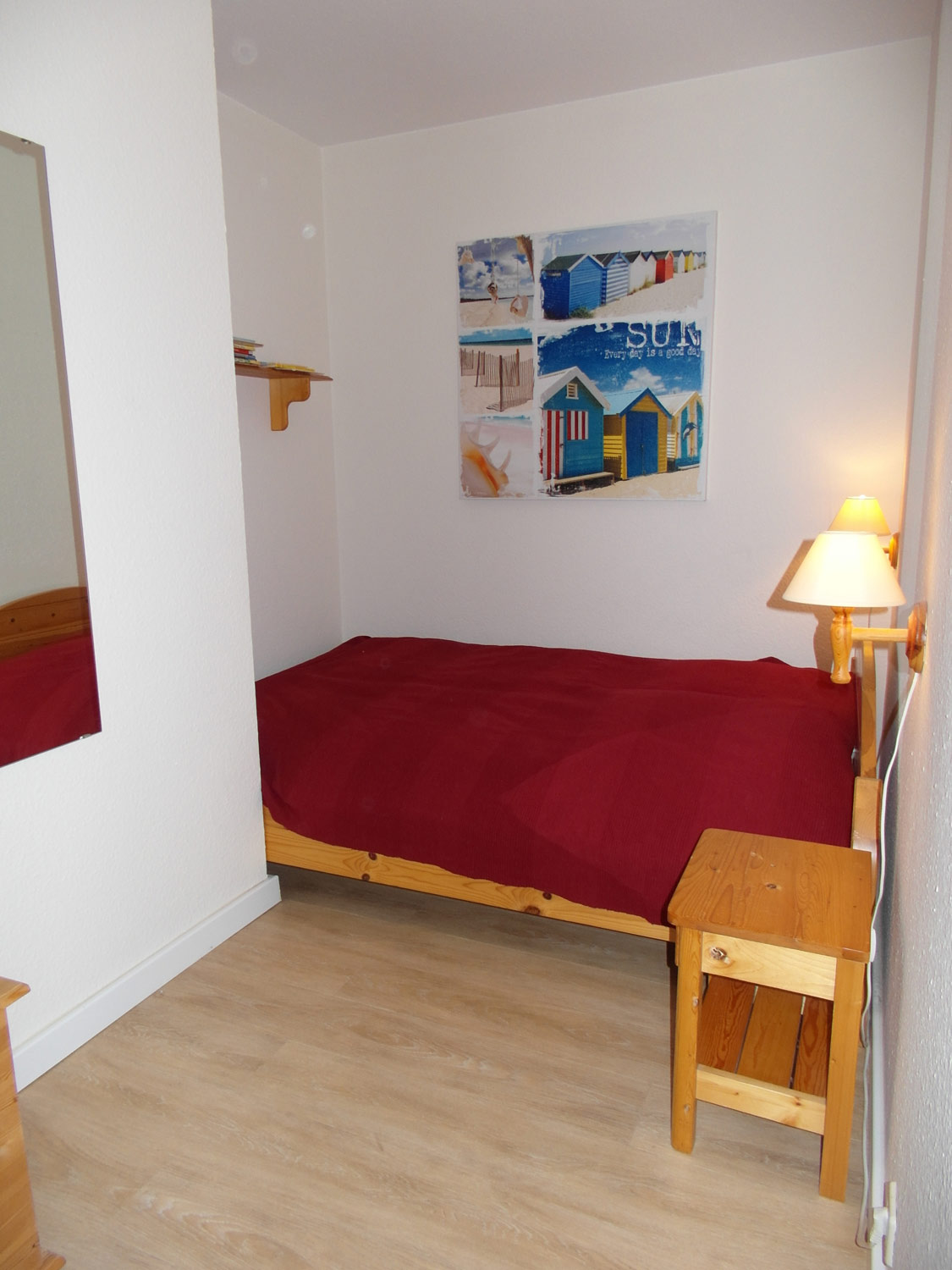 - Schlafzimmer 2: Französisches Bett (1,40 m), geräumiger Kleiderschrank, großer Spiegel